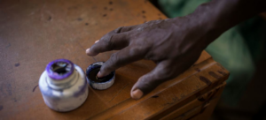UN Photo/Marco Dormino – Le doigt d’un électeur est teint à l’encre après avoir...