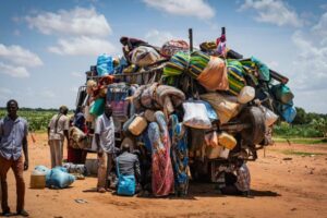 Un camion transporte les biens de la famille de Daoud qui quitte le Soudan....