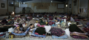 UNICEF/Alessio Romenzi – Des migrants sont couchés sur des matelas à l’intérieur d’un centre...