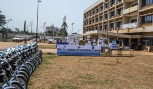 Allassane Sako, Directeur des Opérations de Yango Côte d’Ivoire, distribuant des packs alimentaires aux...